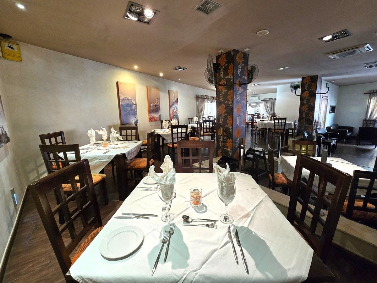 This is a commercial property functioning as a restaurant and is not designed as a residential dwelling. There are no bedrooms. While the location is urban, the nearest beaches are at a considerable distance, as are major airports. A car is considered convenient for some travel.