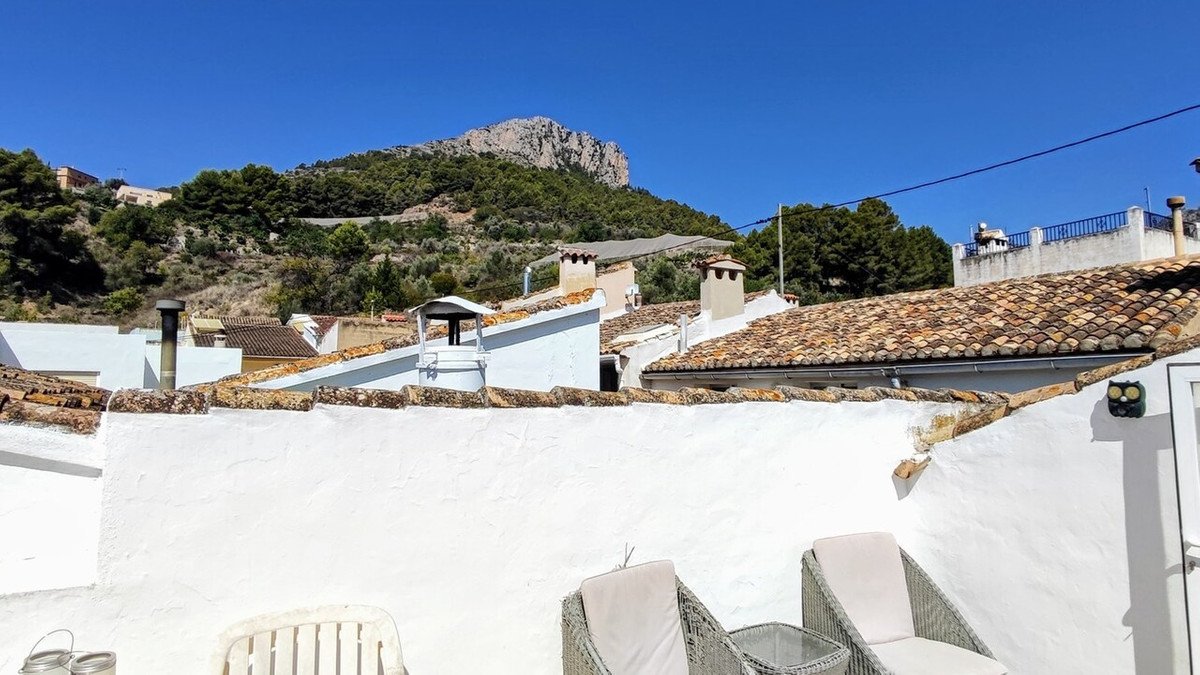 The townhouse is centrally located in Bolulla, an authentic Spanish village inland from the Marina Baixa region. Essential amenities like supermarkets and pharmacies are just meters away, enhancing daily convenience. This location offers a tranquil living environment, away from coastal bustle, yet maintains reasonable access to coastal towns and natural landscapes.