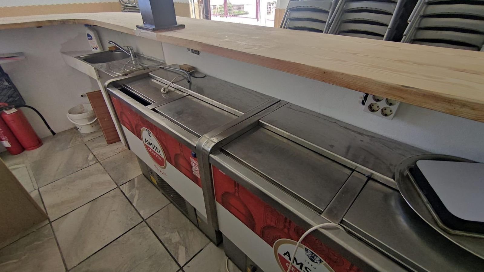 The property offers 75 m² of interior space, complemented by a 50 m² terrace. Facilities include two bathrooms, one of which is accessible for disabled individuals, meeting general accessibility standards. The kitchen is currently unfurnished, allowing for flexible custom fitting. A key technical feature is the presence of a smoke extraction system, suitable for various hospitality activities, and a three-phase power connection, which provides more power than a standard single-phase connection, essential for certain commercial equipment. The possibility to construct an additional floor implies that the current structure can support this, suggesting a certain standard of original build quality.