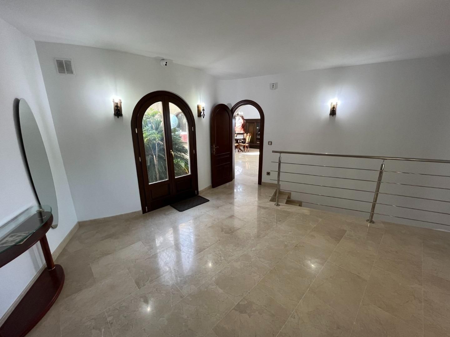 Denne vidtstrakte villa i middelhavsstil ligger i Sierra de Altea og tilbyder en eksklusiv oase af fred og privatliv. Med et bebygget areal på 522 m² på en 5.262 m² stor naturgrund, blev villaen renoveret for ti år siden og strækker sig over tre etager. Den indeholder fire dobbeltværelser, fire badeværelser, to stuer, to køkkener og store terrasser, en opvarmet indendørs pool samt en udendørs pool og andre hjælpebygninger. Beliggenheden i en rolig, naturnær bebyggelse kombinerer afsides beliggenhed med god tilgængelighed.