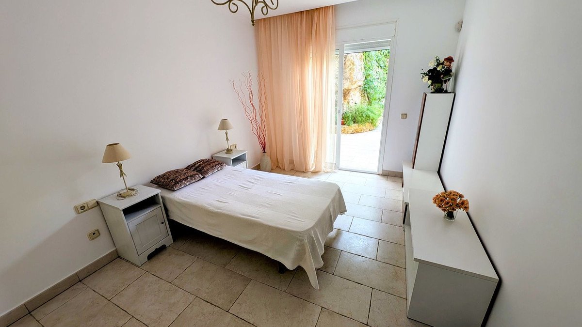 Denna lägenhet i Benahavís, provinsen Málaga, erbjuder 2 sovrum och 2 badrum på 130 m² boyta. Den ligger i en lugn, lantlig miljö, inlands men ändå lättillgänglig. Fastigheten är en del av ett slutet bostadsområde med gemensam pool och välskötta trädgårdar. Med en privat trädgård och en täckt terrass kombinerar den komfort med medelhavslivsstil. Skicket är utmärkt och lägenheten är möblerad, vilket möjliggör omedelbar inflyttning. En privat garageplats och ett förråd ingår också.