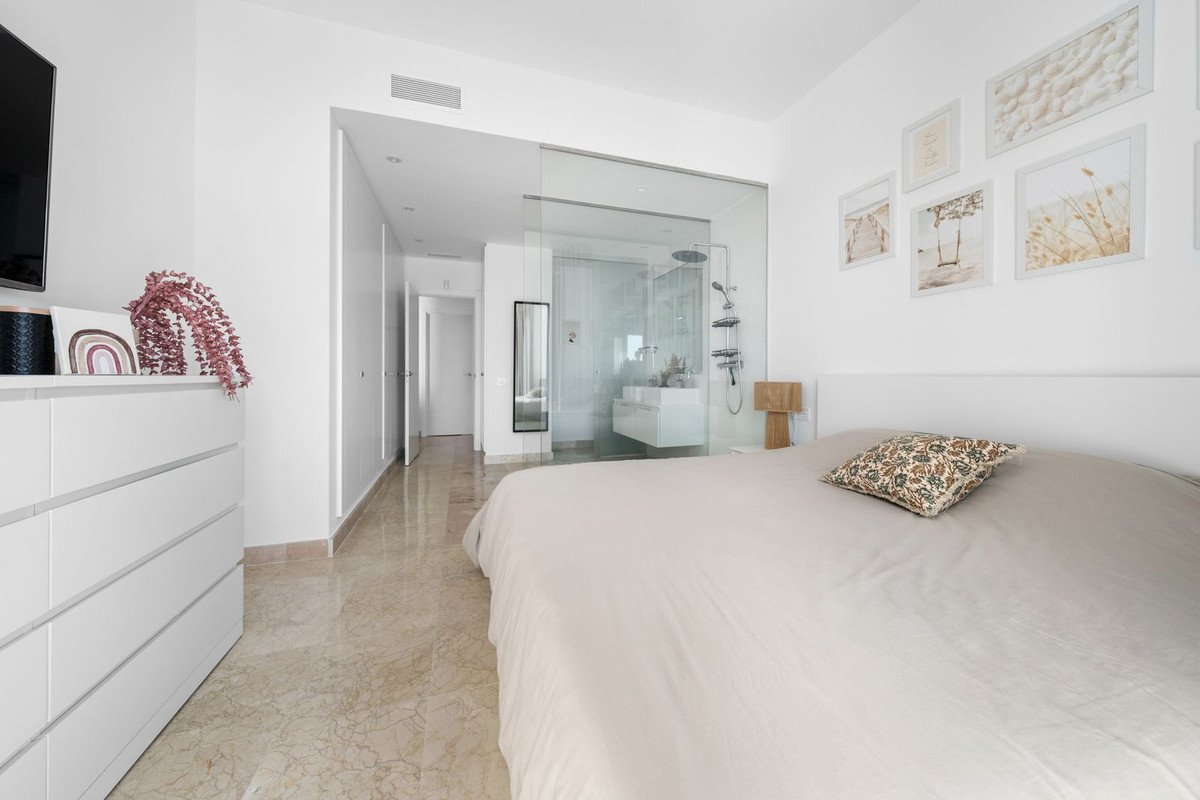 Lejligheden præsenteres i fremragende stand med finish af høj kvalitet. Den har indbyggede skabe til organisering og et master soveværelse med eget badeværelse. Aircondition (varmt og koldt) sikrer behagelige temperaturer året rundt. Den overdækkede terrasse udvider boligarealet udendørs. Udsigten til haven og poolen, samt delvist til havet, bidrager til livskvaliteten. Valget af materialer og udførelsen afspejler en moderne og velholdt standard, der sikrer en behagelig og stilfuld boligatmosfære.