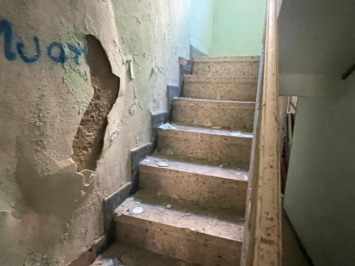 De huidige staat van de woning vereist een volledige herziening van de afwerking en constructie. Beschikbare beelden tonen zichtbare schade zoals een beschadigd plafond en onvoltooide trappen, wat duidt op een project dat vanaf de basis opnieuw opgebouwd moet worden. Dit biedt de kans om materialen en afwerkingen naar eigen keuze te selecteren, van vloeren en tegels tot sanitair en keukenapparatuur. De schaal van 250 m² woonoppervlak biedt ruimte voor diverse indelingen en afwerkingsniveaus, passend bij een modern of juist traditioneel design. De noodzaak tot complete renovatie impliceert dat alle installaties (elektra, water, riolering) en isolatie vernieuwd zullen worden.