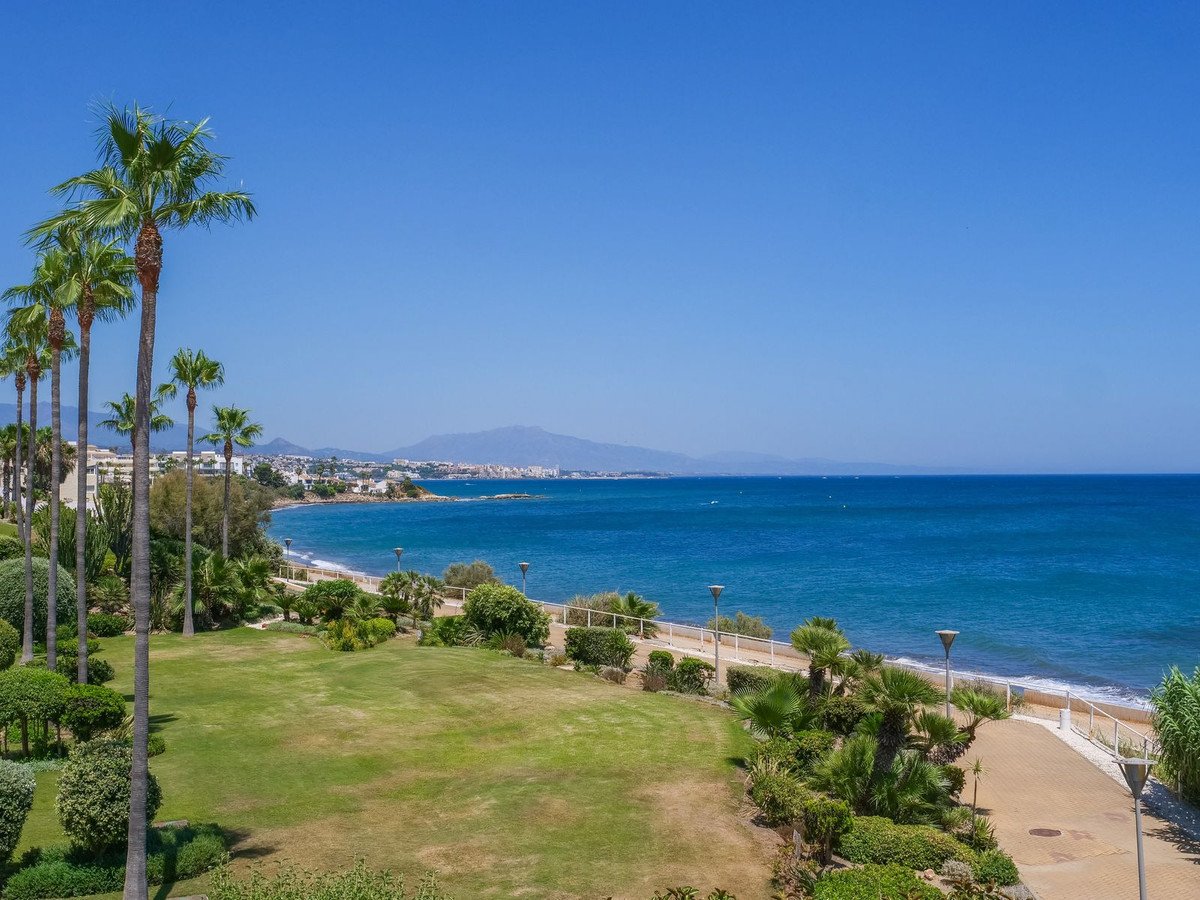Estepona geniet van een mediterraan klimaat met gemiddelde jaartemperaturen rond de 19.2°C, variërend tussen 12°C en 28°C gedurende het jaar. Met een historisch gemiddelde van 3.848 zonuren per jaar, biedt de regio een zonnig klimaat voor een groot deel van het jaar. Het zwemseizoen, waarin de watertemperatuur boven de 20°C ligt, duurt ongeveer 5 maanden. Het landschap rondom Estepona is divers, met de kustlijn die overgaat in de bergachtige gebieden van de Sierra Bermeja, die een hoogte van 1.449 meter bereikt. De hoogte van het appartement op 15 meter boven zeeniveau zorgt voor een aangenaam klimaat, terwijl de vlakke helling naar het strand (1.9%) het genieten van de natuurlijke omgeving vergemakkelijkt.