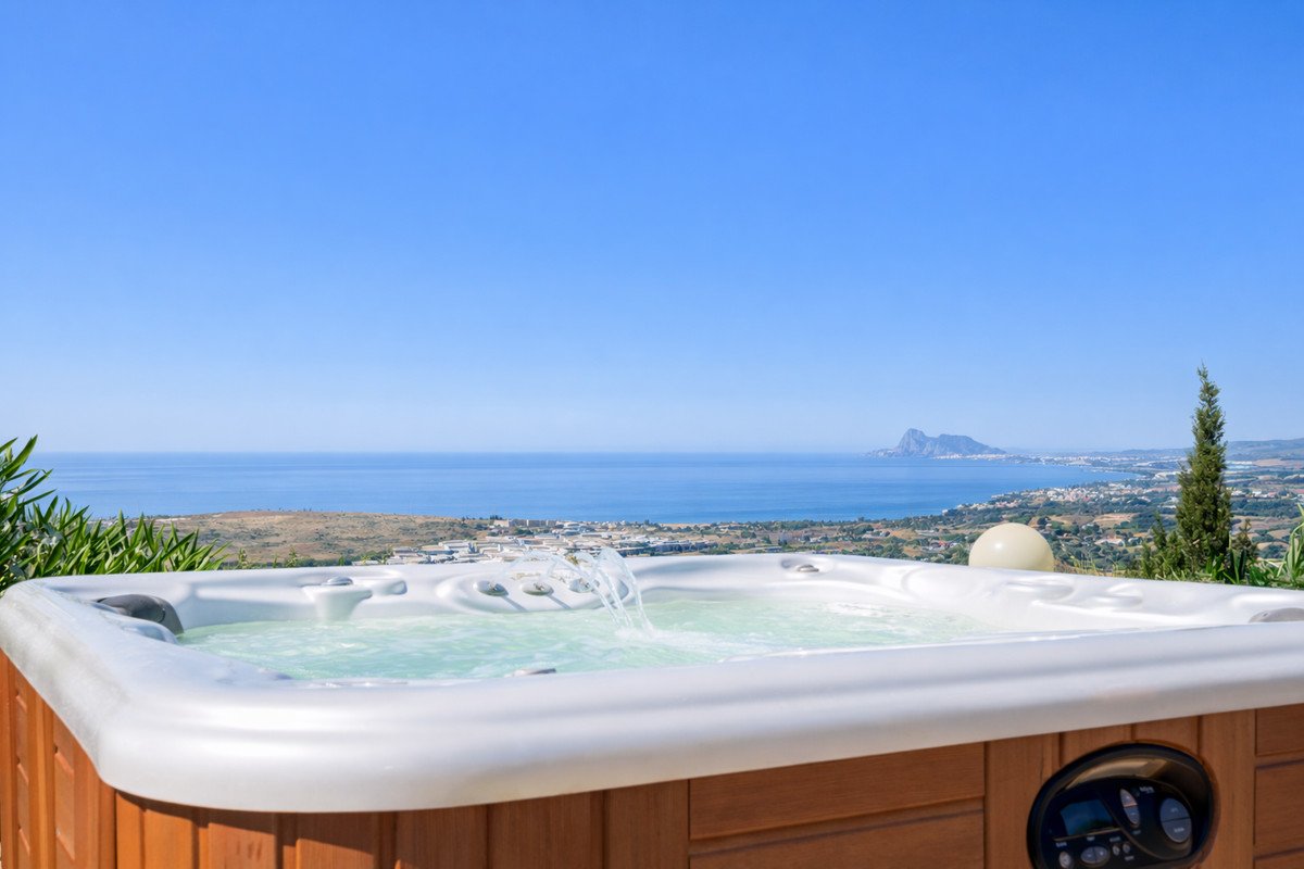 Estepona geniet van een mediterraan klimaat met gemiddelde temperaturen die variëren van 12°C tot 28°C, met een gemiddelde jaartemperatuur van 19.2°C. Er zijn historisch 3.848 zonuren per jaar geregistreerd, wat lange periodes van zonnig weer garandeert. Het zwemseizoen duurt ongeveer 5 maanden, wanneer de watertemperatuur boven de 20°C uitkomt. Het landschap wordt gedomineerd door de Sierra Bermeja, die op 1.449 meter hoogte reikt, wat zorgt voor een bergachtig achterland. Het perceel van 3915 m² met sinaasappelbomen en een eigen waterbron benadrukt de natuurlijke aspecten van de locatie.