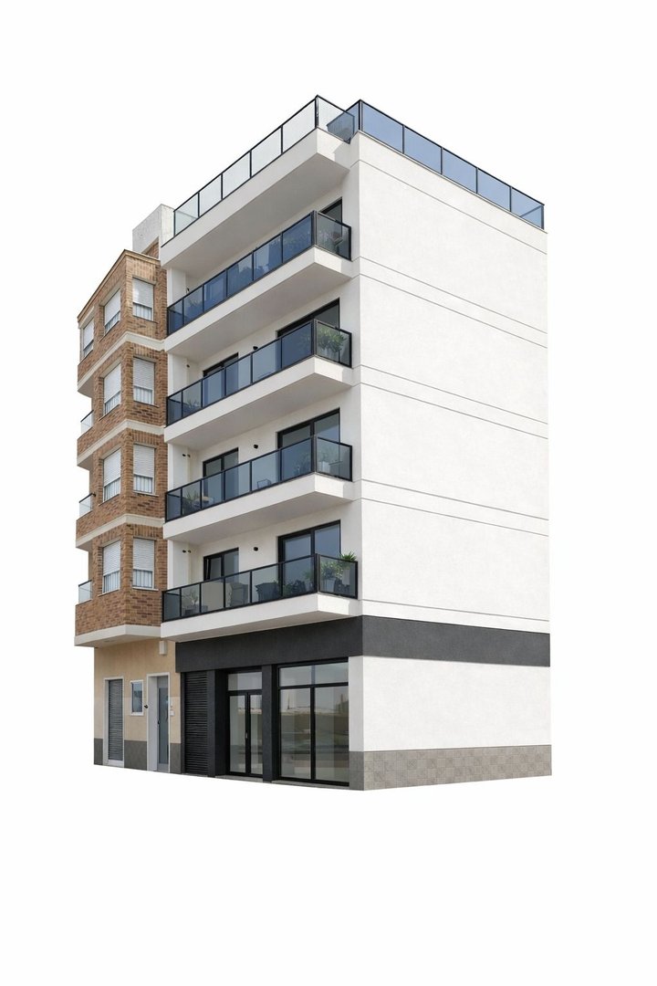 This project is located in an urban center of Guardamar del Segura, within walking distance of various amenities such as shops and restaurants. Its proximity to the Mediterranean Sea and the beach is a key feature, making a coastal lifestyle readily accessible. It's a location that caters to daily needs without requiring car travel for most activities.