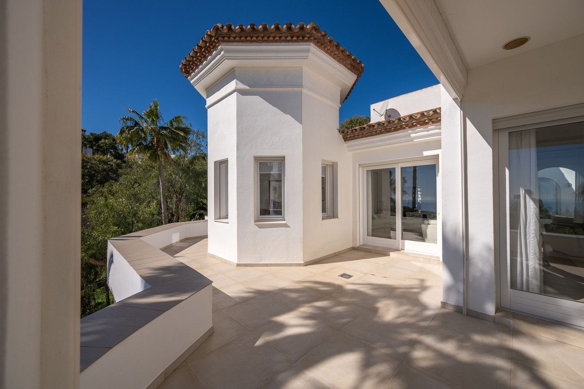 تقع هذه الفيلا المذهلة المواجهة للجنوب في مجمع حصري مسور يتمتع بأمن على مدار الساعة. تم تجديدها بالكامل في عام 2019، وتوفر مساحة مبنية تبلغ 1100 متر مربع على قطعة أرض مساحتها 5960 متر مربع. يضم العقار 4 غرف نوم و 4 حمامات في المنزل الرئيسي، بالإضافة إلى شقتين ضيوف مستقلتين. تشمل المعالم الرئيسية تراسات واسعة مع إطلالات على البحر الأبيض المتوسط، وغرفة معيشة مع مدفأة، ومطبخ حديث مجهز بالكامل، وجناحي ماستر مع خزائن ملابس وحمامات داخلية. يوفر الطابق السفلي منطقة صحية كاملة مع صالة رياضية وساونا ومسبح داخلي مدفأ وجاكوزي وقبو نبيذ وغرفة ألعاب. مسبح خاص وحديقة منسقة وتدفئة أرضية ومرآب وخصوصية مطلقة. إنها فرصة فريدة للاستمتاع بأفضل أسلوب حياة في ماربيا.