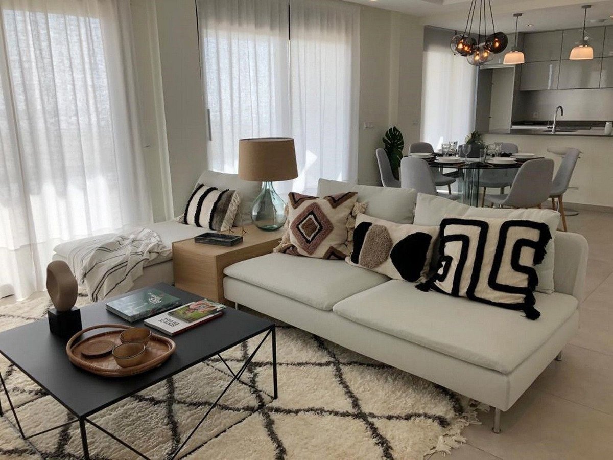 This property is suitable for individuals or families seeking a permanent or semi-permanent residence on the Spanish coast, with a strong preference for proximity to the sea and golf opportunities. It is an option for those who appreciate a quiet environment but still desire access to cultural excursions and recreational activities. The necessity of a car for daily shopping and visits to amenities like hospitals and pharmacies, which are at a considerable distance, makes it suitable for households that can accommodate this. Golf enthusiasts will also find the location appealing, given the presence of multiple golf courses in the region, despite their further distance. The apartment provides ample space for family members or guests, with three bedrooms and two bathrooms, making it a functional choice for those who frequently host visitors.