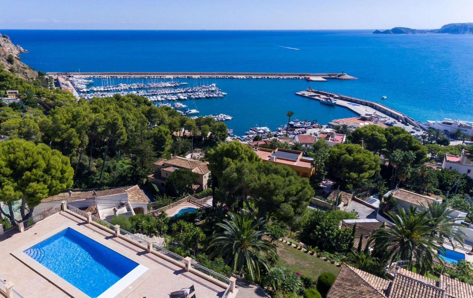 Deze villa is gelegen in Jávea, een kustplaats in de Marina Alta comarca van de provincie Alicante, aan de noordelijke Costa Blanca. De stad is strategisch gelegen tussen de Kaap van La Nao en de Kaap van San Antonio, beschermd door de Montgó Massif. Dit positioneert de locatie als een aantrekkelijke kustbestemming met een mix van natuurlijke schoonheid en stedelijke voorzieningen. Javea staat bekend om zijn populariteit bij internationale bewoners, wat resulteert in een cosmopolitische sfeer en een breed scala aan beschikbare diensten. De ligging biedt een balans tussen de rust van een kustplaats en de nabijheid van grotere steden zoals Denia.