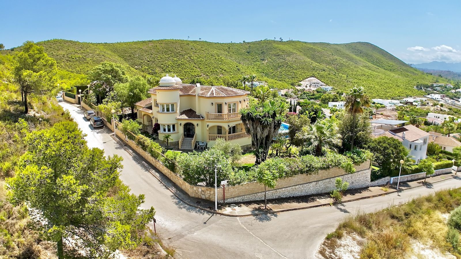 Jávea offers a varied lifestyle with both natural beauty and urban conveniences. Its proximity to the coast, with multiple beaches like Cala de la Granadella just 2.0 km away (as the crow flies), contributes to a maritime lifestyle. For daily necessities, a supermarket is located 1.7 km away, and a pharmacy at 2.4 km. Jávea's town center provides an extensive selection of restaurants and cafes, fostering a lively social environment. The property itself is spaciously designed with a 2080 m² plot, ensuring privacy. The location at just 8 meters above sea level and the relatively flat slope to the beach (0.4%) make the area accessible. The average annual temperature of 18.4°C and 3,802 annual sunshine hours support outdoor activities for a significant part of the year.