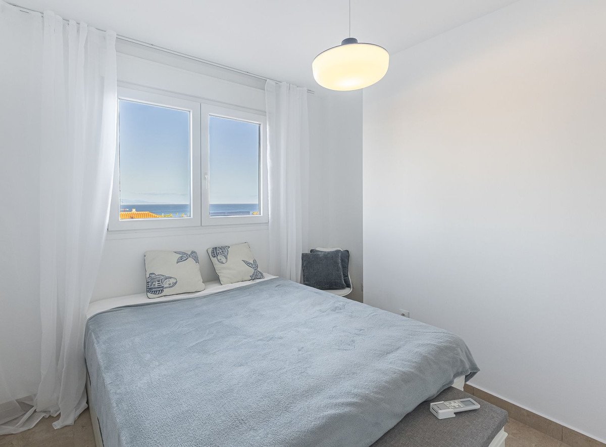 Denne lejlighed i Manilva, Málaga, tilbyder to soveværelser og to badeværelser på 66 m² boligareal. Den blev fuldstændig renoveret i 2025 og sælges møbleret. Terrassen og alle vinduer tilbyder smuk havudsigt. Komplekset har velholdte haver og en stor fælles pool og ligger i et roligt boligområde. Parkering er tilgængelig lige ved siden af komplekset. De fremragende forbindelser til Estepona og Sotogrande, samt nærheden til stranden, gør denne ejendom attraktiv.