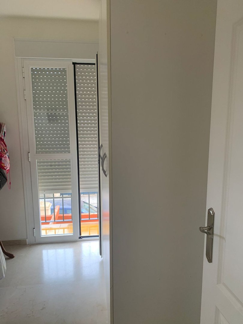 Dom szeregowy prezentuje się w doskonałym stanie po niedawnej renowacji. Posiada marmurowe podłogi, wbudowane szafy i w pełni wyposażoną kuchnię. Łazienki są nowoczesne. Ogrzewanie centralne i klimatyzacja zapewniają komfort o każdej porze roku. Zewnętrzne tarasy, w tym solarium i miejsce do grillowania, poszerzają przestrzeń życiową na świeżym powietrzu. Okna są dwuszybowe, co przyczynia się do efektywności energetycznej. Bezpieczeństwo gwarantuje zamknięte osiedle z całodobową ochroną.