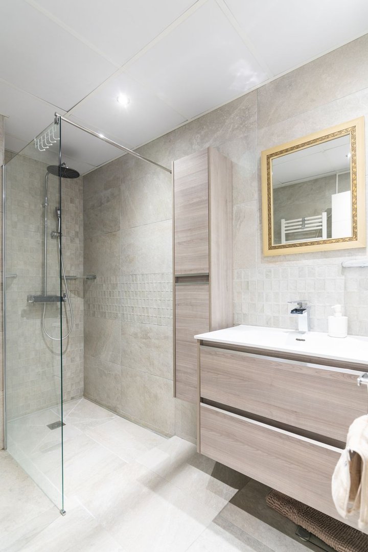 تتميز الشقق بحالة ممتازة، مع مساحة معيشة واسعة تشمل مطبخًا حديثًا مع منطقة لتناول الطعام. تم تجهيز العقار بنظام تكييف مركزي وتدفئة مركزية لضمان الراحة على مدار العام. يوفر المجمع المجتمعي ثلاثة حمامات سباحة وساونا وصالة ألعاب رياضية مجهزة بالكامل، مما يوفر للسكان تجربة معيشة شبيهة بالمنتجع. تخلق الحديقة الجميلة ذات النافورة والمناطق الخضراء المورقة جوًا هادئًا، بينما توفر إطلالات التراس والنوافذ خصوصية وهدوءًا يشبه الغابة الاستوائية.