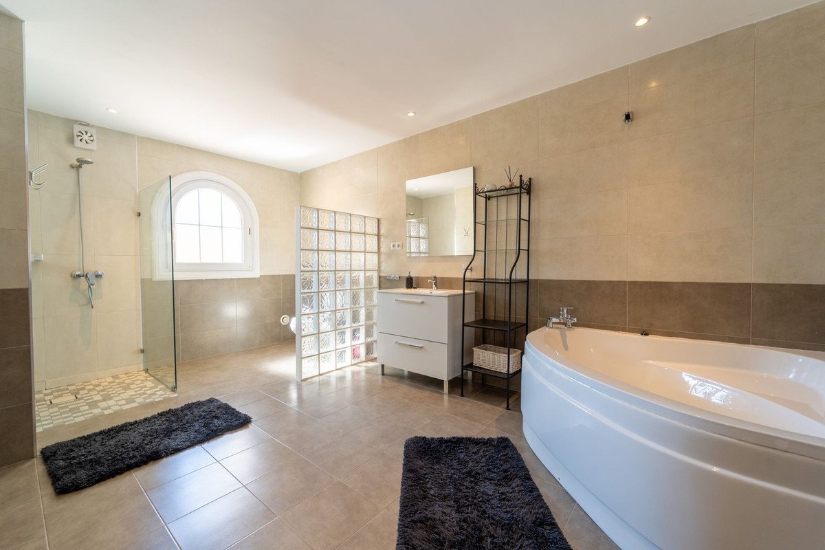 Met 5 slaapkamers en 5 badkamers is deze villa geschikt voor grotere huishoudens of voor wie ruimte zoekt voor gasten of thuiswerkplekken. De aanwezige faciliteiten zoals een privézwembad, sauna en de potentie voor een bioscoopzaal of extra woonruimte, ondersteunen een veelzijdige levensstijl.