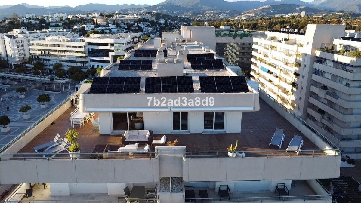 Puerto Banús staat bekend als een luxe jachthaven en winkelcomplex, gesticht in 1970 en uitgegroeid tot een belangrijk centrum voor recreatie en entertainment aan de Costa del Sol. Met miljoenen bezoekers per jaar trekt het gebied internationale beroemdheden en een welvarend publiek. Dit penthouse bevindt zich in deze levendige omgeving, met voorzieningen zoals restaurants en winkels op korte afstand. De stedelijke ligging betekent een constante activiteit, vooral tijdens het hoogseizoen. De nabijheid van stranden en golfbanen, zoals Real Club de Golf Las Brisas op 2.2 km, biedt recreatieve mogelijkheden buiten de directe omgeving van de jachthaven. Het appartement zelf is recent gerenoveerd, wat een comfortabele en moderne woonervaring garandeert, met een terras dat uitkijkt over de Middellandse Zee en de haven.