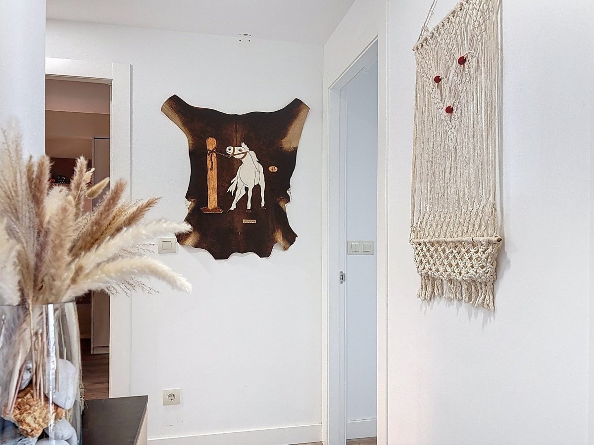 Apartament prezentuje się w dobrym stanie z przemyślanymi udogodnieniami. Posiada klimatyzację zapewniającą komfortowe temperatury przez cały rok oraz okna z podwójnymi szybami dla efektywności energetycznej i izolacji akustycznej. Wbudowane szafy zapewniają praktyczną przestrzeń do przechowywania. Kuchnia została niedawno odnowiona wysokiej jakości meblami na wymiar, łączącymi nowoczesny design z funkcjonalnością. Częściowo przeszklony taras w kształcie litery L powiększa przestrzeń mieszkalną i umożliwia jej wykorzystanie w różnych warunkach pogodowych. Wspólne ogrody i wspólny basen uzupełniają udogodnienia.