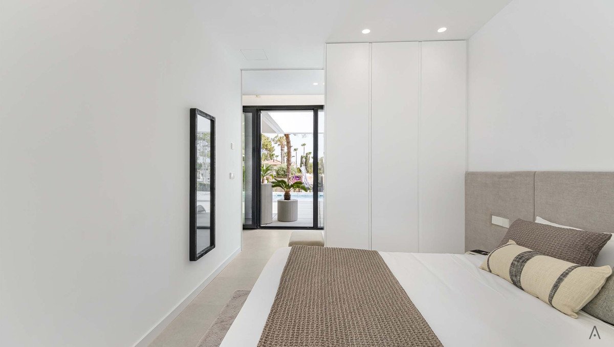 Compared to other new developments on the Costa Blanca, such as OCEANIC APARTMENTS in Rojales (from €475,000) and NUEVA DAYA VILLA in Daya Nueva (from €380,000), Campoamor R-5 positions itself in a higher price bracket. This is likely due to its larger plot size (1765 m²) and specific location near the coast and highly-rated golf courses, like Real Club de Golf Campoamor (289 m). RESIDENTIAL VIVALIFE - KEY READY! in Lomas de Cabo Roig (from €369,000) offers a lower entry price, but its project details suggest a different type of property and scale. The features of Campoamor R-5, such as the expansive double-height living space, the ground-floor suite, and the private pool, justify the higher price point within the detached villa segment. Its location within an urban area with walking-distance amenities, coupled with proximity to beaches (4.2 km as the crow flies) and golf, distinguishes it from more secluded developments.