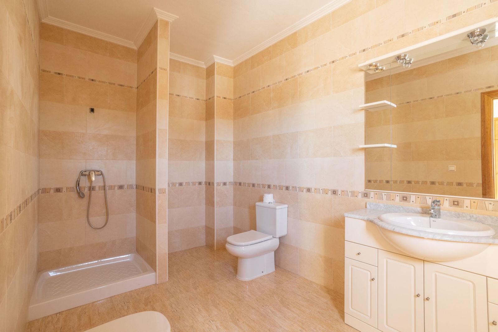 يقع هذا التاون هاوس في منطقة حضرية في سان ميغيل دي ساليناس، مع سهولة الوصول إلى المرافق سيرًا على الأقدام. يقع العقار على مسافة قصيرة بالسيارة من الشواطئ وملاعب الجولف المصانة جيدًا. تستغرق القيادة إلى مدينة توريفايخا حوالي 20 دقيقة، وإلى المطار حوالي 45 دقيقة. تبلغ مساحة العقار حوالي 410 مترًا مربعًا، موزعة على ثلاثة طوابق، ويحتوي على أربع غرف نوم وأربع حمامات، ومرحاض للضيوف، وغرفة معيشة ومطبخ. بالإضافة إلى ذلك، توجد فناء كبير بمساحة 22 مترًا مربعًا تقريبًا، وشرفات، وتراس على السطح بمساحة 100 متر مربع تقريبًا، ومرآب خاص.
