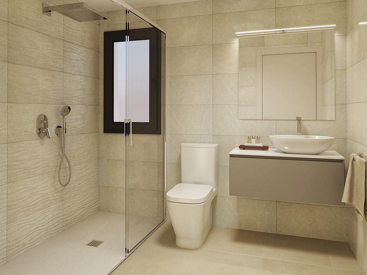 The apartments are designed with attention to modern living quality. Descriptions mention fully fitted kitchens, indicating a practical and functional space for daily meal preparation. Bathrooms are finished in a contemporary style, as suggested by imagery featuring beige tones and sleek showers. Terraces and balconies, as depicted in photos, offer outdoor space with views, potentially oriented towards the surroundings or communal areas. The emphasis on a gated complex and entry phone systems points to a focus on security and privacy. Garage parking and separate storage areas contribute to the convenience and organization of the living space.