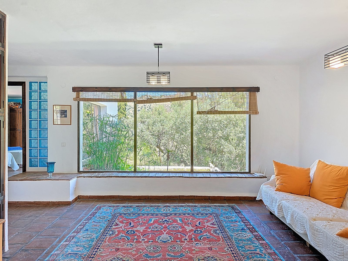 De villa presenteert zich in goede staat en kenmerkt zich door een traditionele Spaanse architectuur gecombineerd met praktische elementen. De woning is verdeeld over twee vleugels die naadloos met elkaar verbonden zijn, wat zorgt voor een organische indeling. Binnen vindt men ruime kamers, waaronder een woonkamer met open haard en een studeerkamer. De master bedroom is voorzien van een luxe badkamer met whirlpool en sauna. Een aparte casita met eigen keuken en badkamer biedt extra wooncomfort en flexibiliteit. De woning beschikt over vloerbedekking, inbouw kasten en een privé terras. Duurzaamheid is deels geïntegreerd met zonnepanelen voor warm water en een aanzienlijke watertank van 160.000 liter.