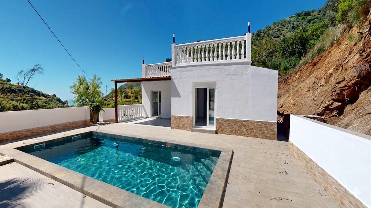 This detached villa is offered from €448,000. With 3 bedrooms and 2 bathrooms, spread over 140 m² of living space on a 3000 m² plot, the property offers considerable space. The pricing reflects its location in a quieter, rural region of the Costa del Sol, with a large plot that guarantees privacy. The property is already completed, meaning the buyer can move in immediately without further construction costs or waiting times.