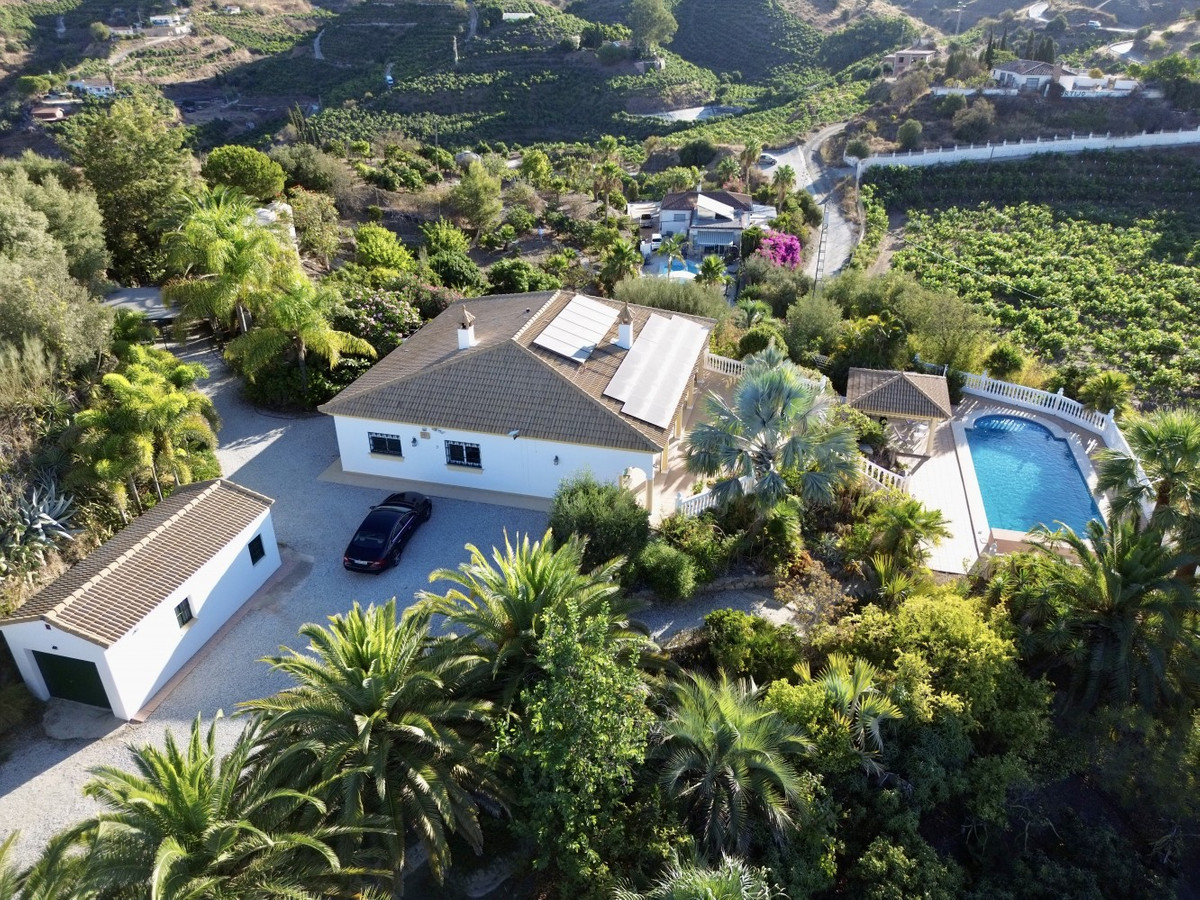 Vélez-Málaga goza de um clima mediterrânico com invernos amenos e verões quentes, resultando numa temperatura média anual de 19,1°C. Com 3.902 horas históricas de sol por ano, a região é ideal para atividades ao ar livre. A época balnear dura cerca de seis meses, quando as temperaturas da água ultrapassam os 20°C. A moradia está situada a uma altitude de 59 metros acima do nível do mar, proporcionando uma circulação de ar agradável e vistas. A paisagem circundante é caracterizada por colinas e montanhas, que contrastam com a costa próxima. O jardim da moradia está plantado com várias árvores de fruto, sublinhando a natureza fértil da região.